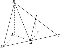 分析:(1)连接$AM$,$PM$,$\angle PMA$为直线$PM$与平面$ABC$所成的角,在$\Delta PAM$中,求解即可; (2)先证明$AC\bot$平面$PAB$,可得$AE$为直线$ME$到平面$PAB$的距离.进则求$AE$的长即可. 解:(1)连接$AM$,$PM$,