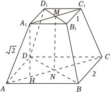 (5分)在正四棱台$ABCD-A_{1}B_{1}C_{1}D_{1}$中,$AB=2$,$A_{1}B_{1}=1$,$AA_{1}=\sqrt{2}$,则该棱台的体积为 $\dfrac{7\sqrt{6}}{6}$ . 分析:先根据题意求出四棱台的高,再代入台体的体积公式即可求解. 解: