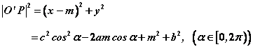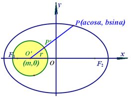 椭圆与圆的位置关系 Ⅰ、只限于椭圆与圆有共同对称轴时,研究椭圆与圆上点的最大或最小距离。 由于圆的半径是不变的,椭圆与圆上点的最大或最小距离就转化为定圆的圆心与椭圆上点的最大或最小距离。 Ⅱ、如图,设椭圆 : 的点 ,圆 : , 与圆 交于点 ,则