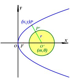 抛物线与圆的位置关系 只限于抛物线与圆有共同对称轴的情况,研究抛物线与圆的最短距离。 由于圆的半径是不变的,抛物线与圆的最短距离就转化为定圆的圆心 与抛物线的最短距离。