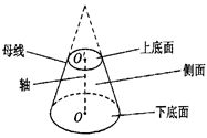 ③圆台的相关概念: 与圆柱、圆锥一样,圆台也有轴、高、底面、侧面、母线(如下图)。