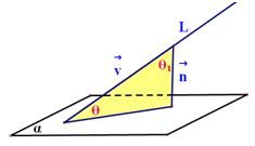 。 用向量方法求点面距离的特点是不要作垂线,不要求找到垂足就可以求得点面距离。 ⑺求线面所成的角: 设直线L的方向向量为 平面 的法向量为 ,向量 与 的夹角为 ,直线L与平面 所成的角为 ,则 ,