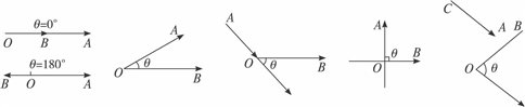 。 其中θ是 与 的夹角,向量夹角的范围是0°≤θ≤180°。
