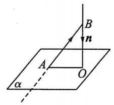 如图,$BO \bot 平面 α$,垂足为$O$,则点$B$到平面$α$的距离就是线段 $BO$ 的长度 若$AB$是平面$α$的任一条斜线段,则在$Rt\triangle BOA$中, $|\vec{BO}|=|\vec{BA}|\cdot \cos \angle ABO= \dfrac{|\vec{BA}| \cdot |\vec{BO}|\cdot \cos \angle ABO}{|\vec{BO}|}$