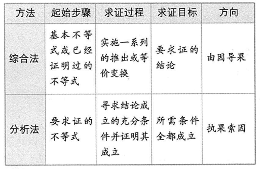 (3)分析法 从所求证的不等式出发,分析使这个不等式成立的条件,只要使不等式成立的条件已具备,就断定原不等式成立,这种证明的方法叫做分析法.使用分析法时,要保证“后一步”是“前一步’的充分条件,通常采用“欲证-只需-已知”的格式. 分析法的思路是“执果索因”,在表述中经常用符号“←”这里要注意箭头的方向.用分析法时,一般用“←”,用综合法时,一般用“→”. 一般来说,无理不等式、三角不等式以及含绝对值符号的不等式,均以采用分析法较方便. 【小结】综合法与分析法的比较