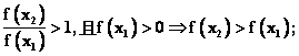 函数单调性判断方法--定义法 利用增减函数的定义判断。在判断过程中,把数式的大小比较转化为求差比较(或求商比较)。 ⑴转化为求差比较判断程序: ①设任意的x1 、x2 ∈D,使x1 <x2 ; ②求差—变形—判断正负;此为关键步骤,变形多要“因式分解”。 求差: ;变形:化简、因式分解;判断: 的符号正或负。 ③下明确结论。 ⑵转化为求商比较判断程序: ①设任意的x1 、x2 ∈D,使x1 <x2 (若0<x1 <x2 ,则 ;若x1 <x2 <0,则 ); ②求商—变形—判断小于或大于1;此为关键步骤,变形要注意“因式分解”。 求商: ; 变形:化简、因式分解; 判断: 小于或大于1。 ③下明确结论,要注意商的分母的正负,即 若 若 。 |