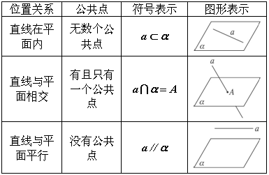 (3)直线与平面的位置关系的图形与符号表示: