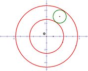 表示圆心在原点的同心圆系与已知圆的位置关系,相切时达到最值;