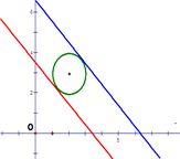 表示斜率为-1的平行直线系与已知圆的位置关系,相切时达到最值。