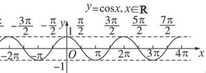 我们只要将y=cosx,x∈[0,2π]的图象向左、向右平行移动(每次2π个单位长度),就得到余弦函数的图象如下图所示