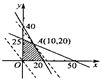 若变量x,y满足则,的最大值是( )A.90 B.80 C.70 D.40解:作出可行域如下图所示:由于的斜率分别为-2,,而的斜率为,故线性目标函数的倾斜角应大于的倾斜角小于的倾斜角,由图知,经过点时,z有最大值,z的最大值为70.