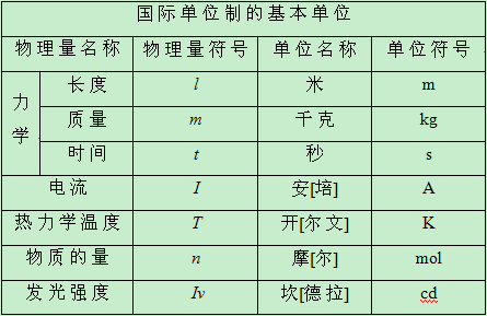 国际单位制 国际单位制分为: 基本单位:一系列由物理学家订定的基本标准单位。